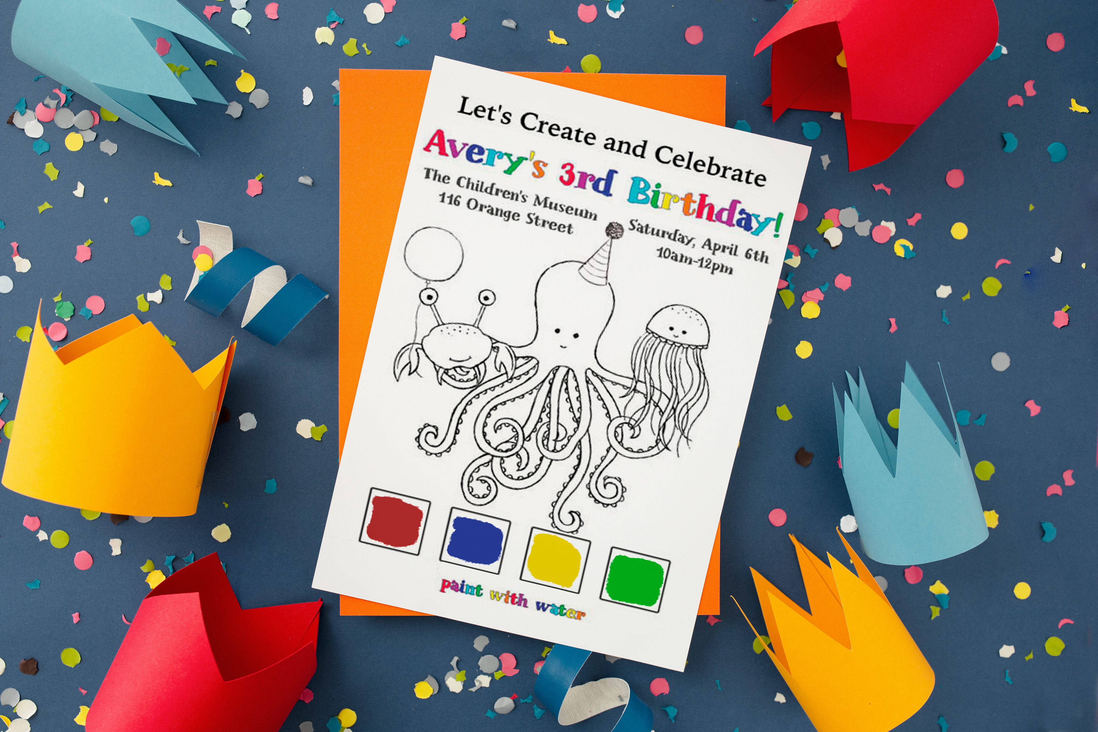 With a perforated line for tearing the stub and a punch on the month and day, this ticket invitation was perfect for a train-themed birthday party.